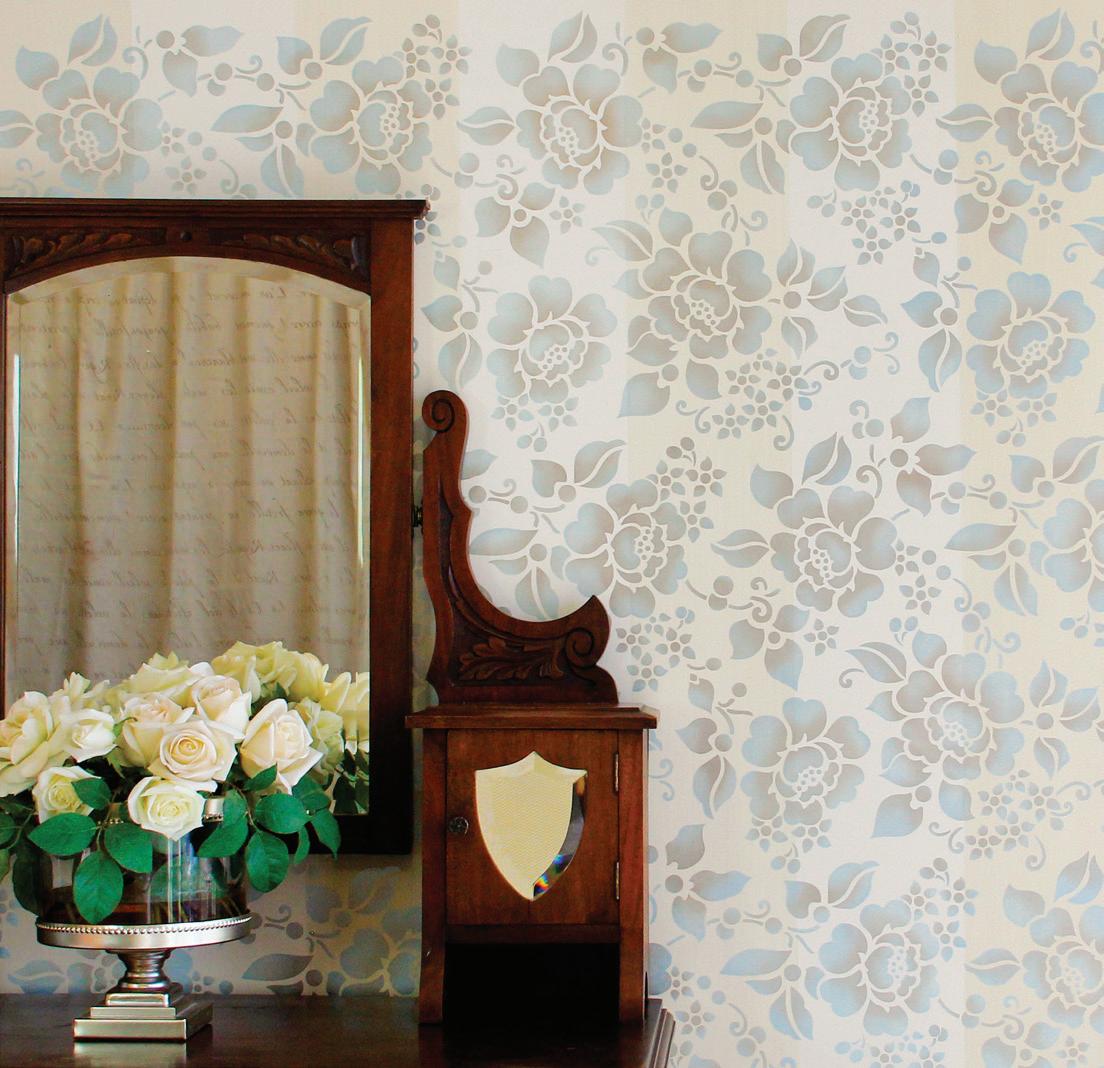 6229L...Spring Rose Blossoms Wall Stencil 21”w x 24”h, single overlay $46.95