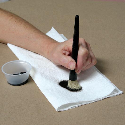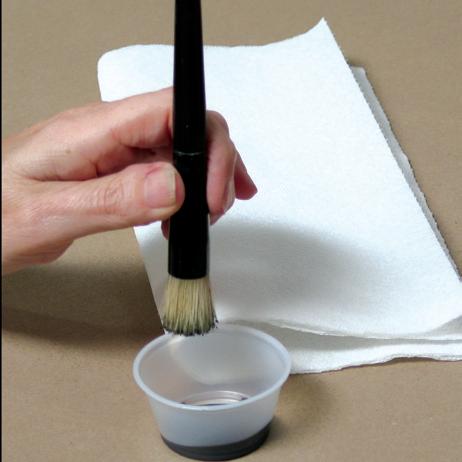 2. Immediately “offload” excess paint by rubbing the brush very firmly onto several layers of good quality, absorbent paper towels in a hard circular motion. This action helps to distribute the paint evenly on the brush and removes excess paint, leaving the brush in “drier” state, which is the key to successful stenciling.