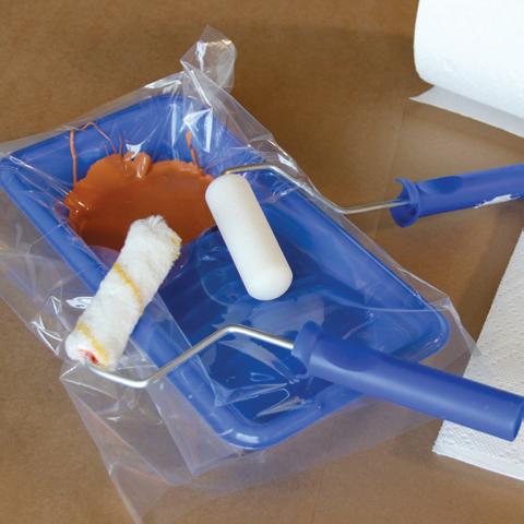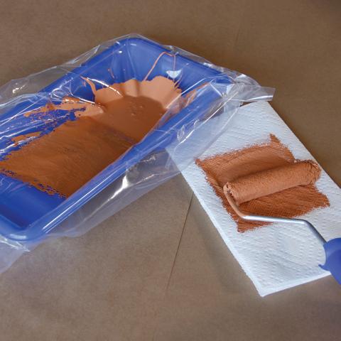 1. Put a small amount of paint into a paint tray. Hint: Line the paint tray with a leftover plastic bag for easy cleanup later!
