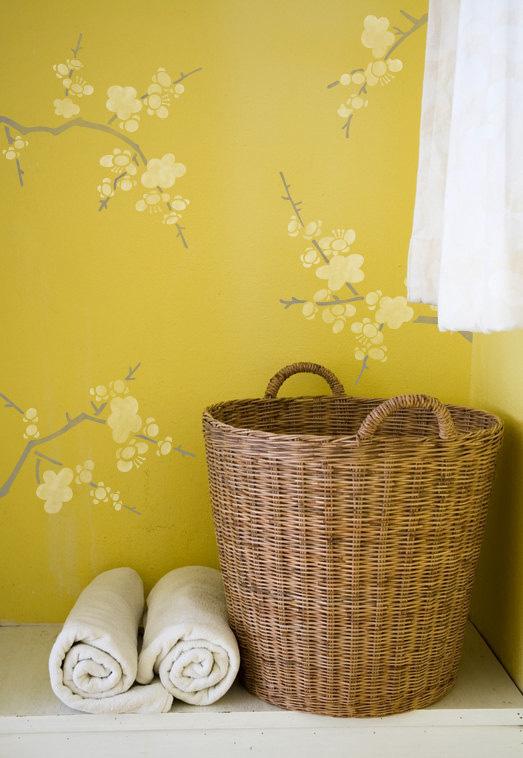 Allover and damask stencil patterns allow you to create inexpensive, custom wallpaper effects. When stenciling a symmetrical pattern on a feature or main wall, be sure to start with the design centered on the wall so that it ends the same at each corner.