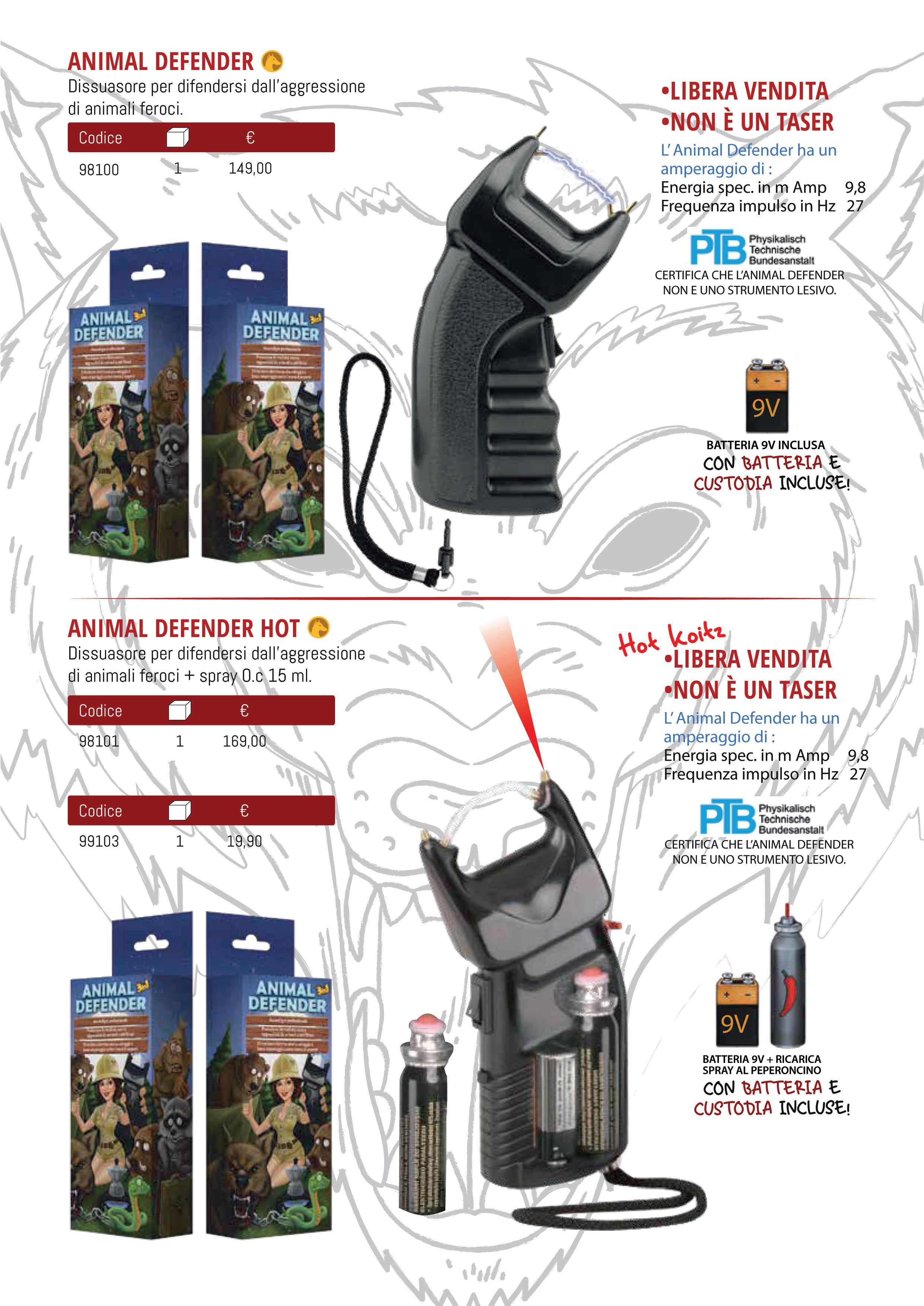 BIGLIE AL PEPERONCINO PER USO DIFENSIVO DA ANIMALI FEROCI