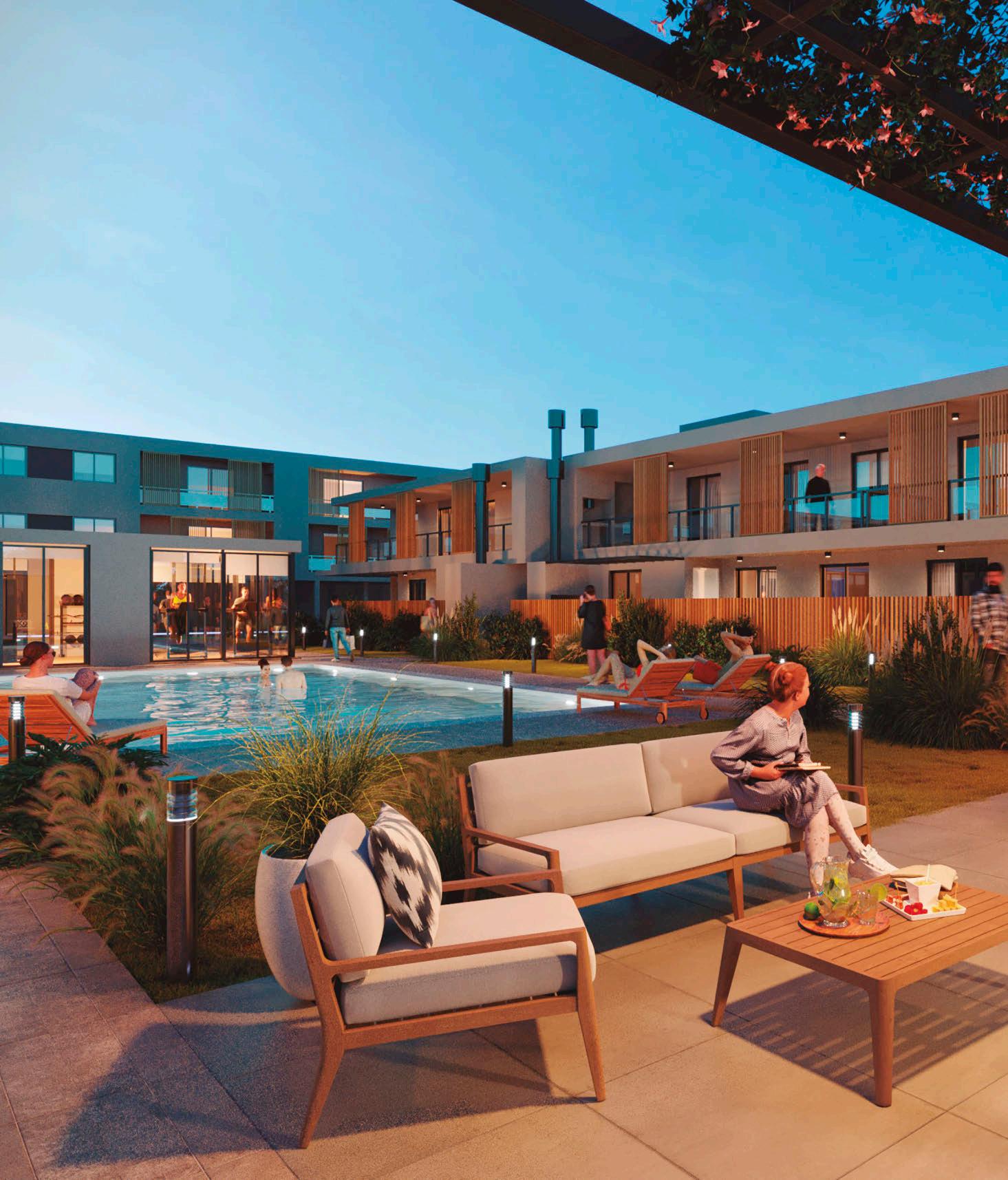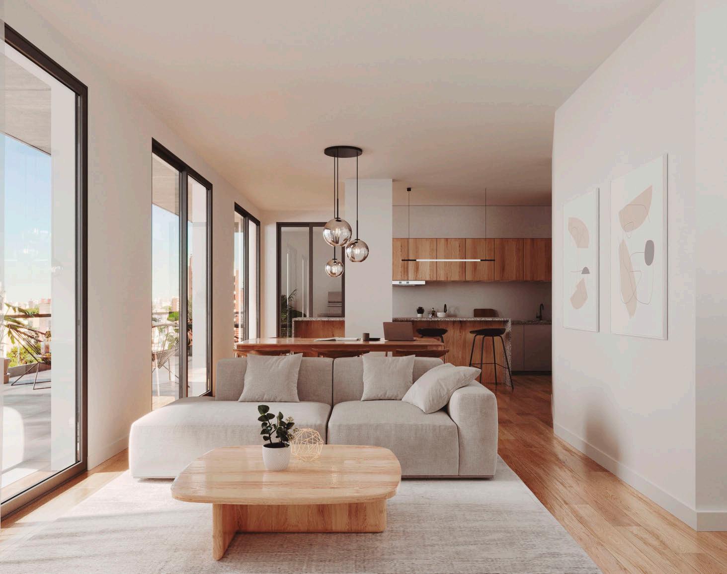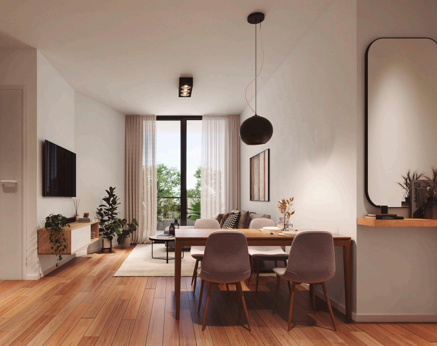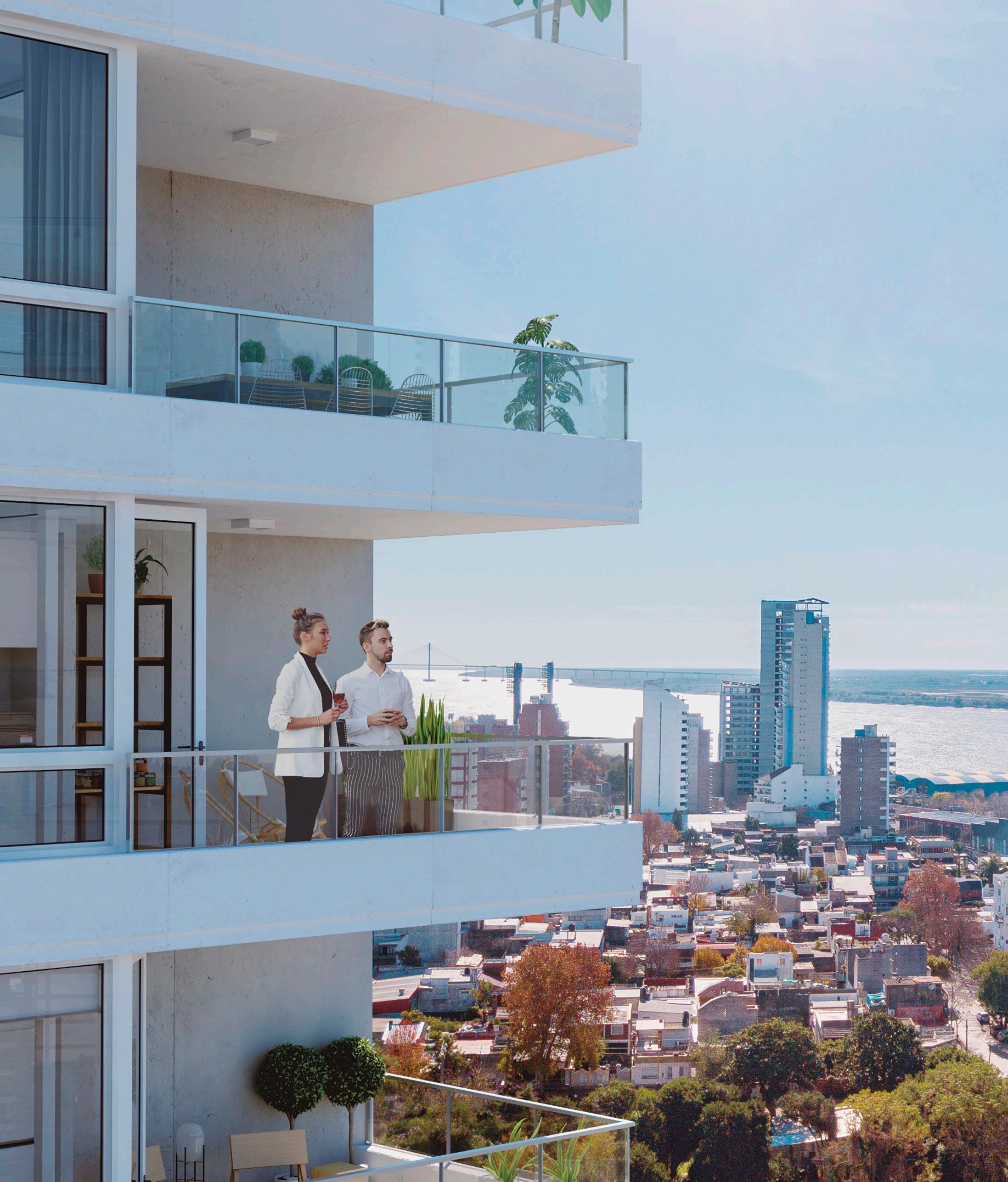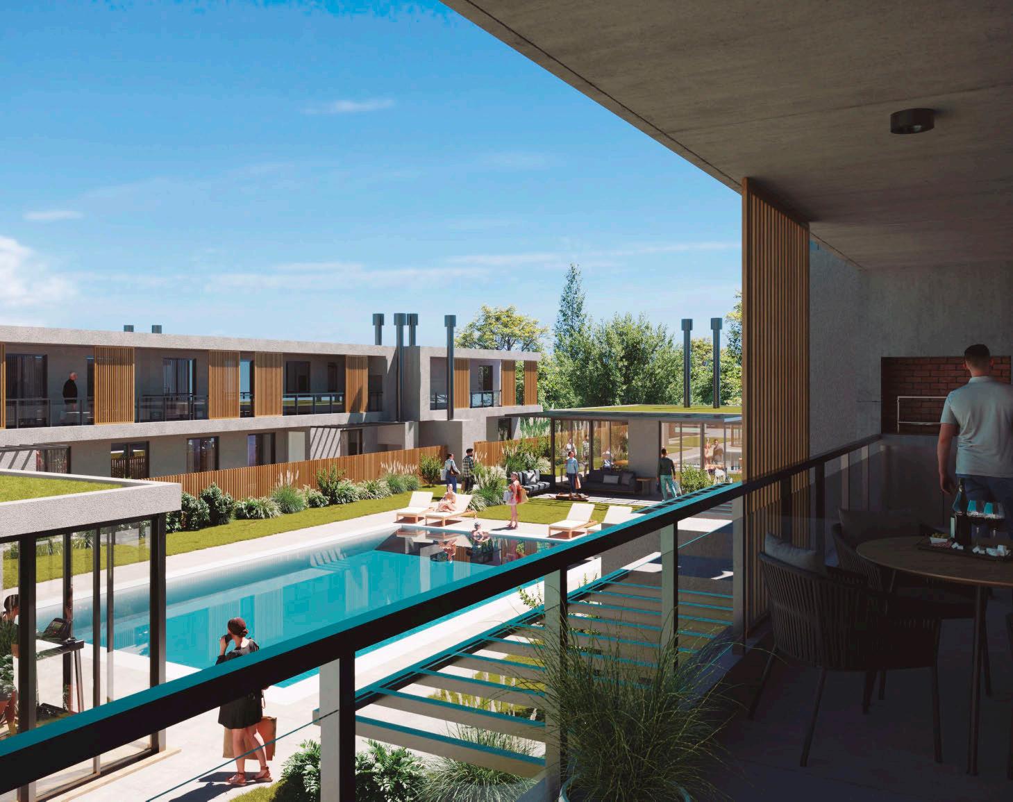 Unidades de 1, 2 y 3 dormitorios con balcones y patios privados.