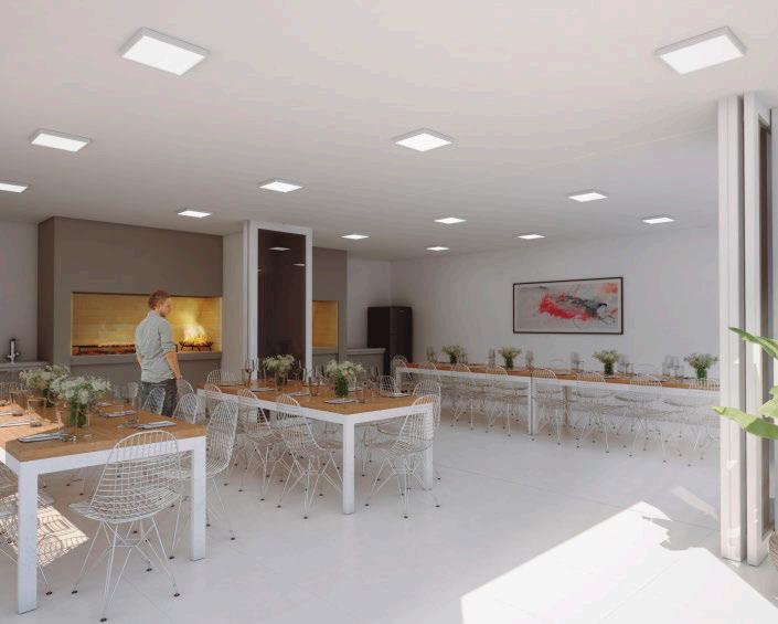 Cocheras, terrazas exclusivas, gimnasio, estación aeróbica, kinder, parque, quinchos, vestuarios y piscina.