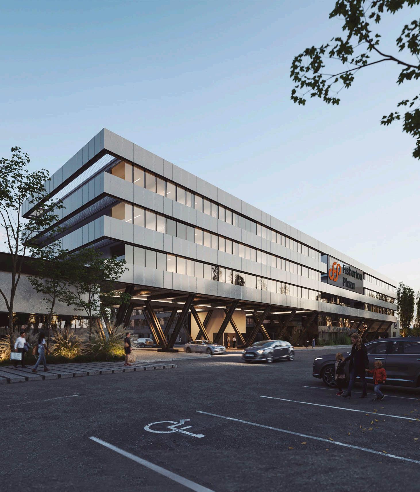 Proyecto de ampliación del centro comercial a cielo abierto Fisherton Plaza Mall. Dos núcleos de unidades con oficinas con espacios polivalentes y posibilidades de unificación.