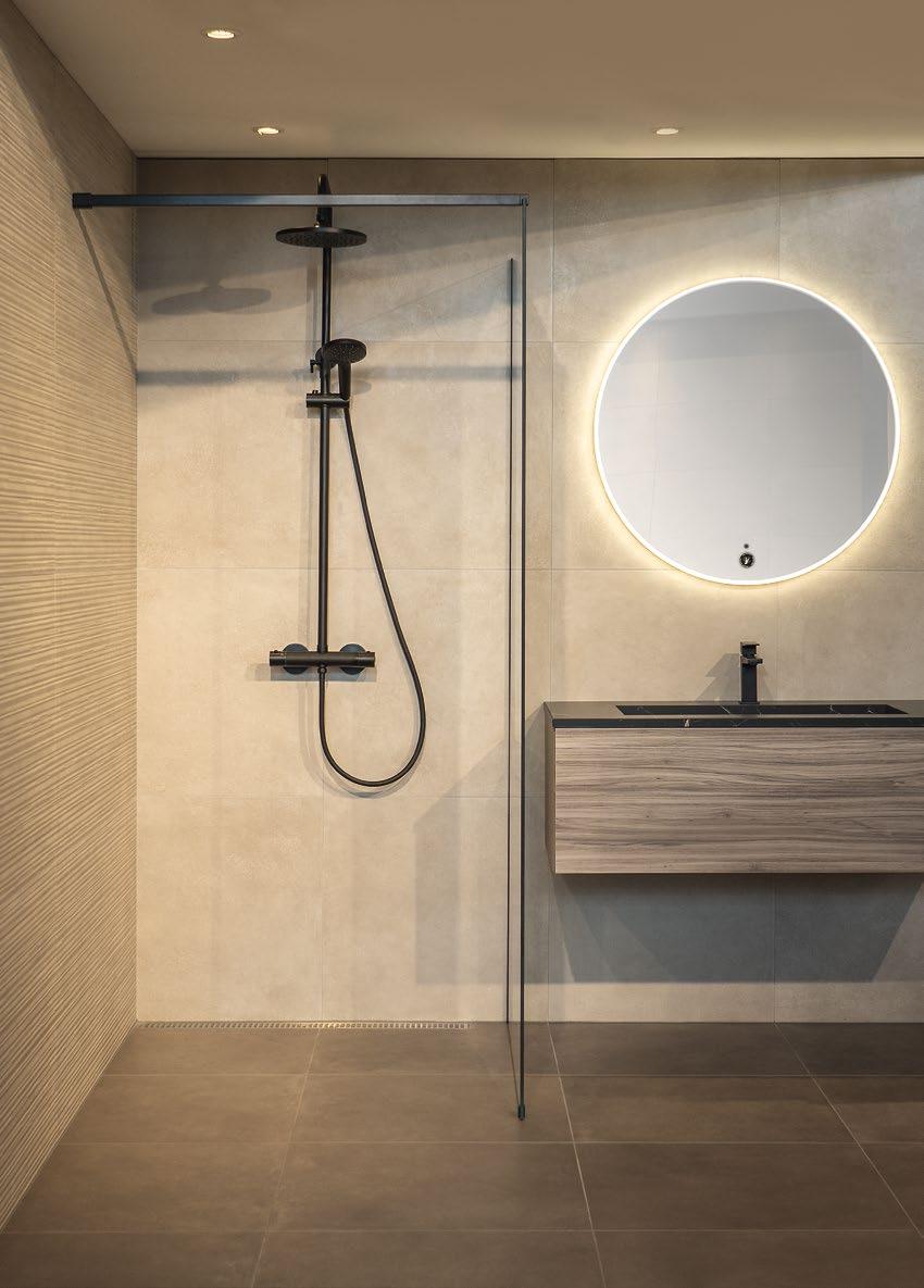 Dusjglass med riller skaper et eksklusivt utseende og skjermer for innsyn. Lekre profiler i PVD i forskjellige farger gjør dusjløsningen til et smykke på badet. Leveres også i 100 cm lengde.