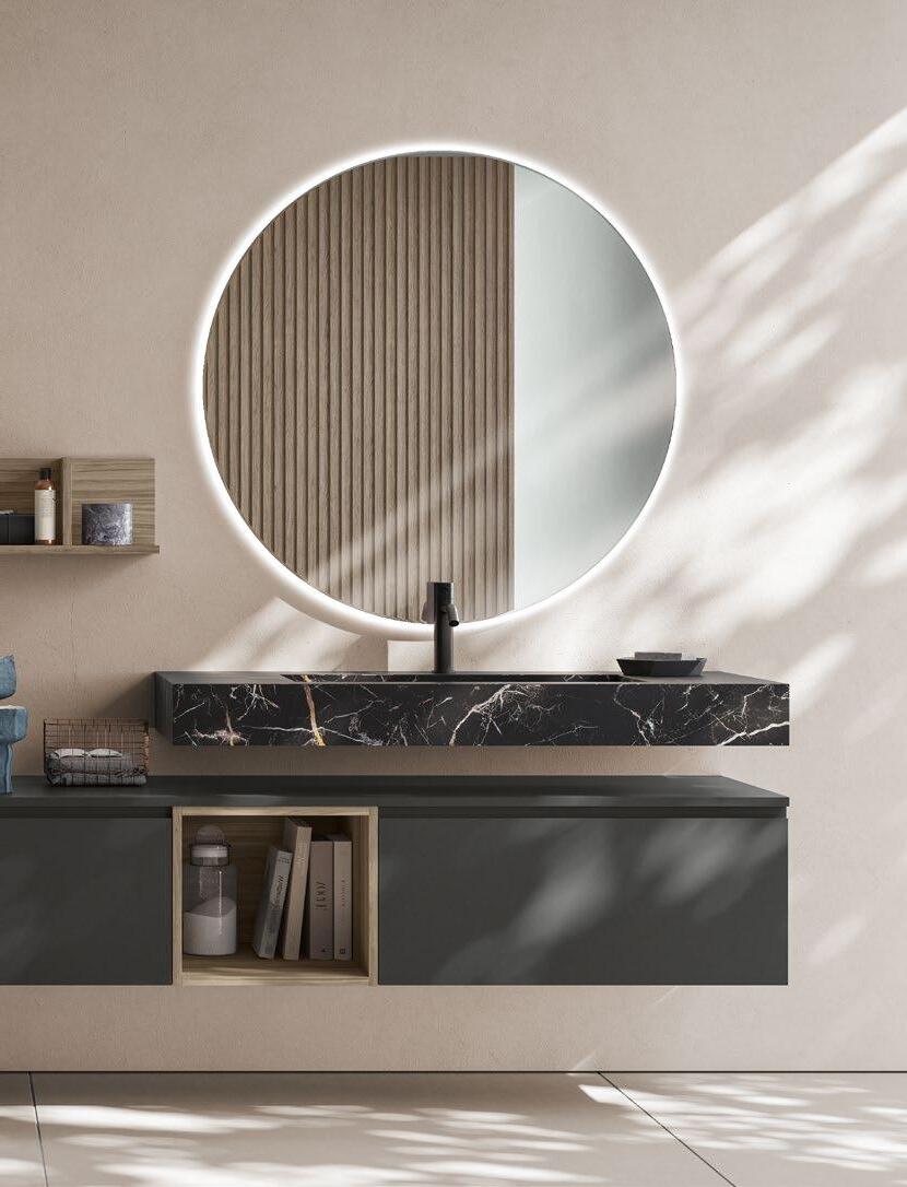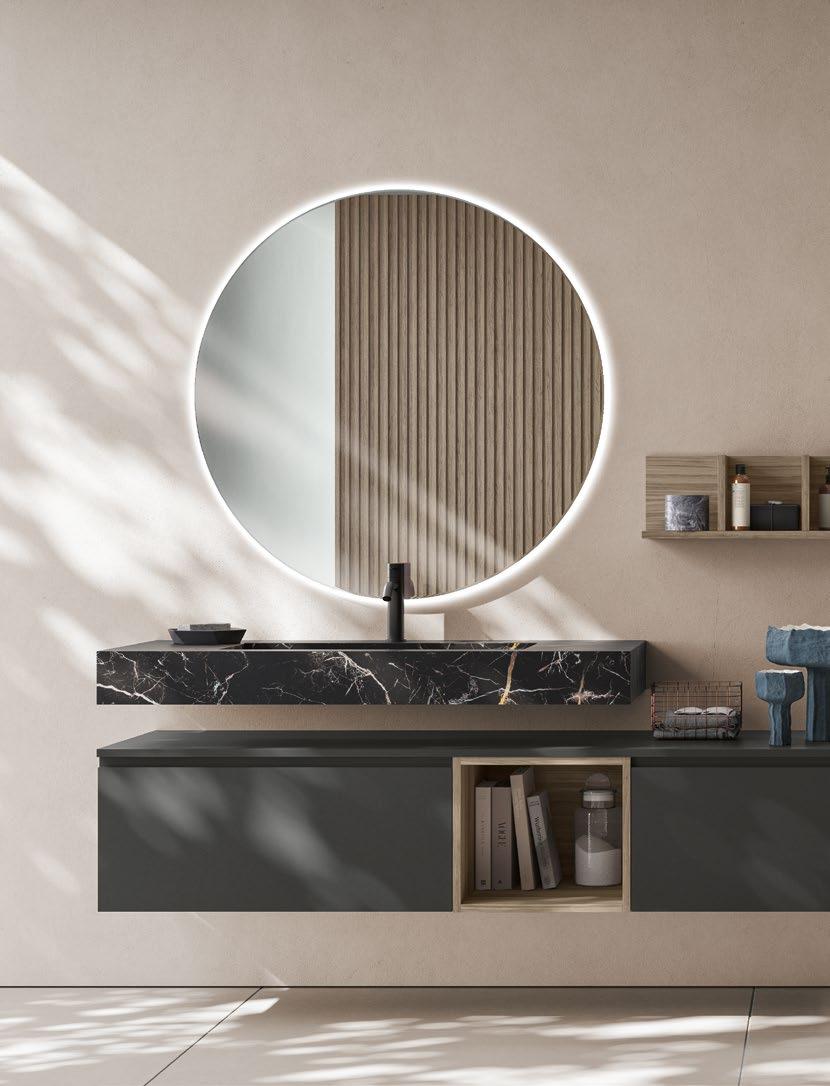 cm i fargen Matt Antracite. Speil: 100 cm Smart rundt speil.