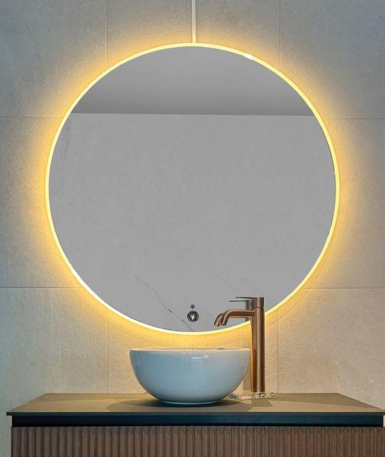 En lekker kant rundt speilet som gir lys i front og bak. Vi leverer i 3 praktiske størrelser. CE- godkjent IP44