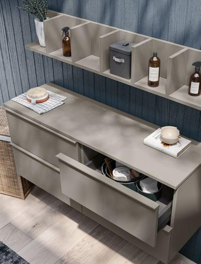 Skuffene har demping og solid omramming i metall som sikrer lang levetid. Leveres med mange forskjellige alternative servanttopper.