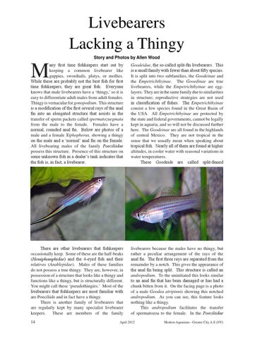 Livebearers Lacking a Thingy Story and Photos by Allen Wood