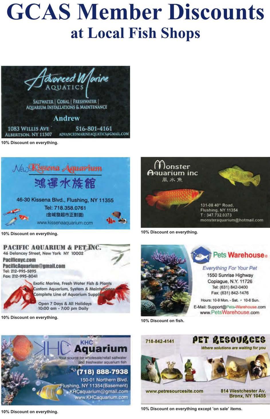 The Greater City Aquarium Society meets every month except January and February. Members receive notice of meetings in the mail or by email. For more information, contact: Dan Radebaugh at (718) 458-8437, email to gcas@earthlink.net, or fax to (347) 379-4984. For more information about our club or to see previous issues of Modern Aquarium, you can also go to our Internet Home Page at http://www.greatercity.net, http://www. greatercity.org, or http://www.greatercity.com.