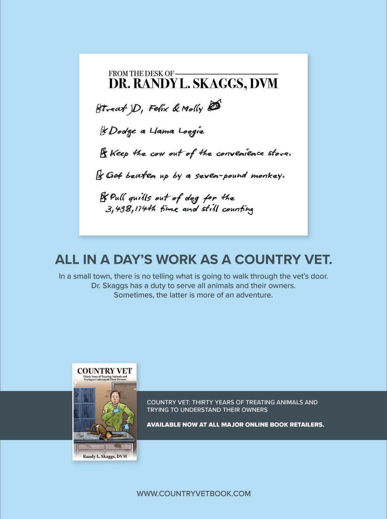 vets of old, those working in small communities treat “anything that isn’t human.” Skaggs’ retellings of treating everything from bulls to bald eagles are a delight. From run-ins with cheeky monkeys to assisting birthing cows and helping barn cats, you’ll find yourself entirely won over by this small-town vet and the cast of colourful characters that call this Texas panhandle town home.
