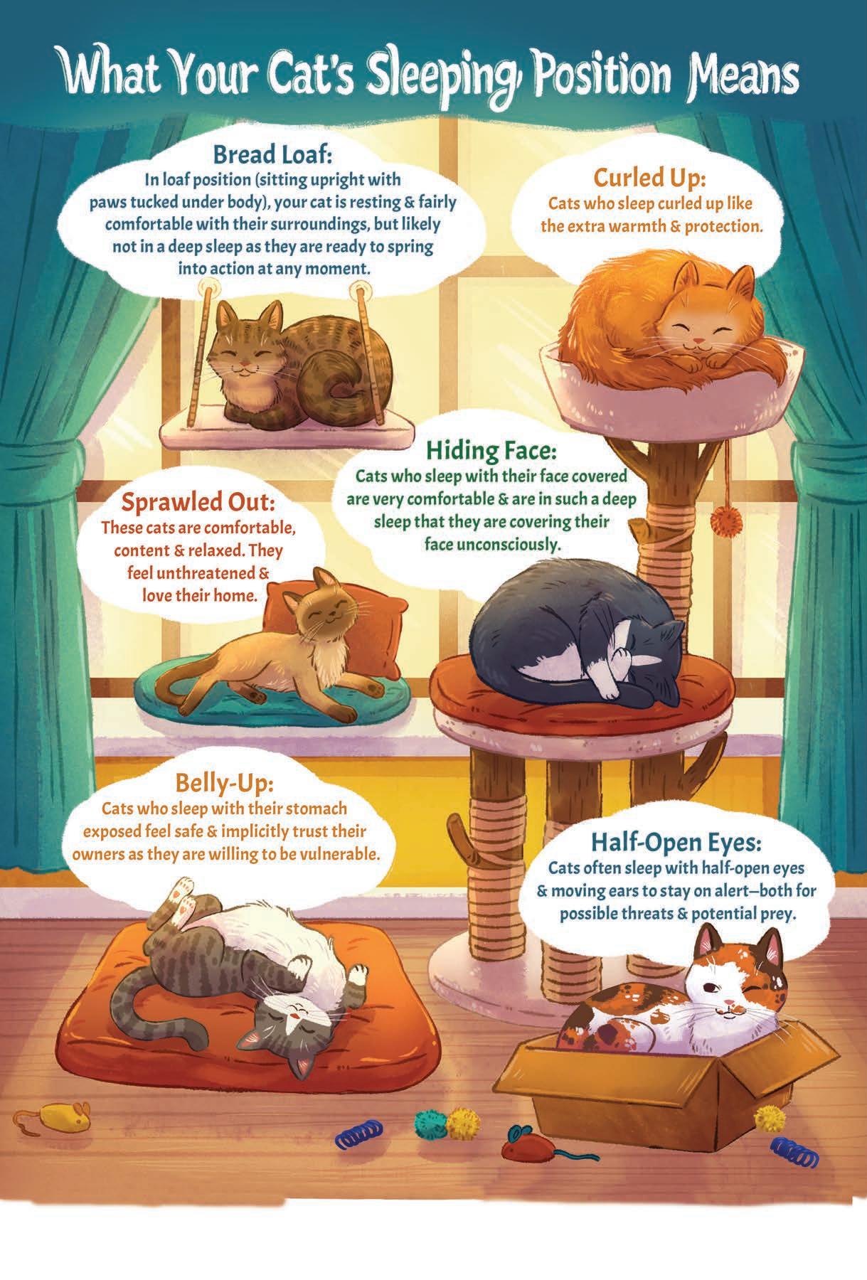From belly up to sprawled out, what your cat’s sleeping position says about their mood and comfort level.
