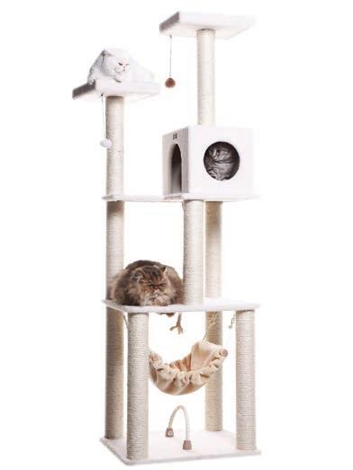 Try the Armarkat Classic Cat Tree (model B7301)! Featuring multiple levels, perching spots, a cozy cat house, a plush hammock, and sisalwrapped posts, this tree is a multi-cat haven. ($215, armarkat.com)