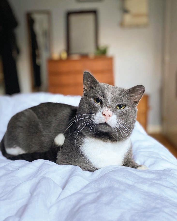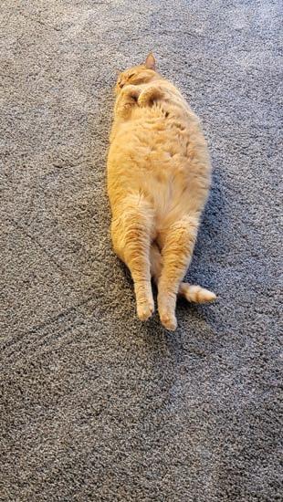 Spats followed me home ‘cause I promised him food. He slept in my car at night, and walked into the house with the dogs in the morning. He’s taken my chair and most of my pillow at night.
