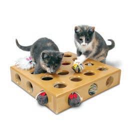 Instead of leaving all the cat toys in a basket, create the feeling of plentiful prey by putting out toys in different areas of your home. Rotate toys weekly to keep things interesting. We love the Frisky Furball toy from P.L.A.Y.! ($7, petplay.com).