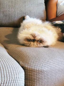 Our beloved cat Purrcy passed after a long illness, and I was inconsolable. A friend at a local shelter called about a kitten that was rescued from Hurricane Maria and flown up to New Jersey. She told me, “You must come see this baby!” Still grieving, we went to visit, and it was as if the universe knew I could not live without Purrcy— heaven sent us a miniature of him! Purrcy was 13 pounds, and Stellaluna remains five pounds! She trembled for weeks then one day, she simply stopped—and now rules her domain and heals our hearts! Laura Baker