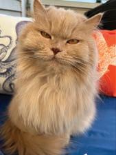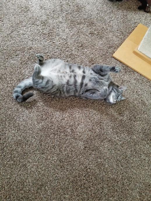 Gojo found me. I was working at the library that day, out sitting under the big clock. Gojo came over, but not too close. He meowed and rolled around in the grass. I went and got him water. I told myself if he is outside when I get off, I will take him home. Sure enough, he was waiting on me at the door. He let me pick him up, and we have been together ever since. I needed him more, I think. Gojo came into my life at my darkest