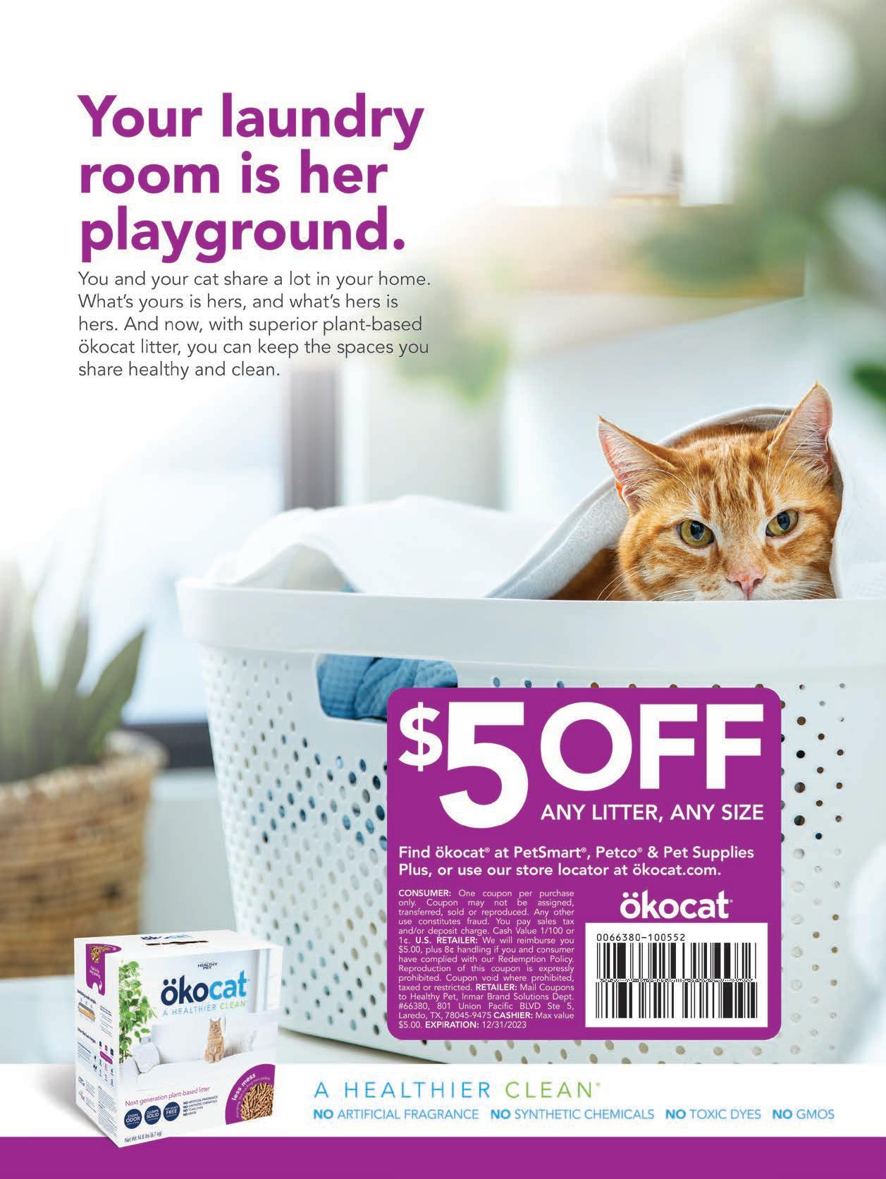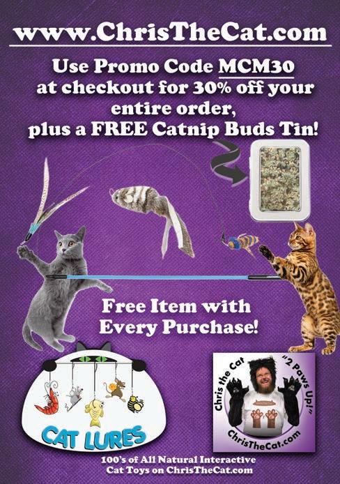 got six months of giveaways, from a gorgeous cat tree to prize packs of cat food, litter, and treats. Flip to page 22 to see what’s up