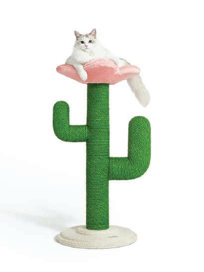 Try the Catit Vesper Minou scratcher. It combines a scratchable exterior (covered in replaceable sisal scratching mats!) with a cozy hideout featuring a memory-foam cushion and two entrances so your cat won’t feel cornered! ($100, catit.ca)