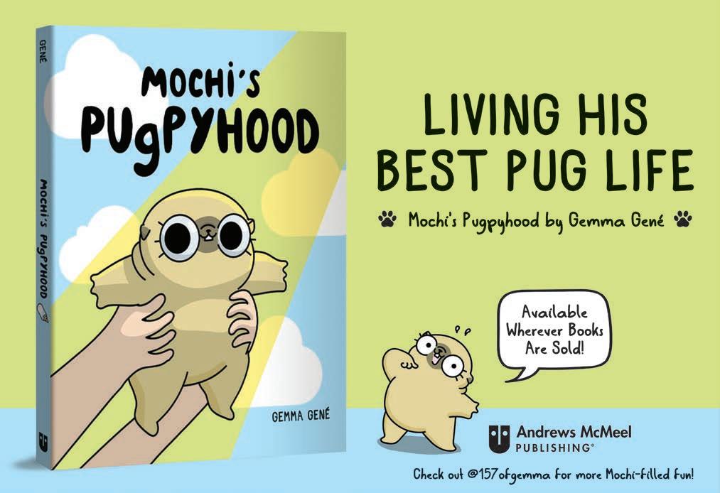 This hilarious collection of all-new comic strips from Gemma Gené tell the story of how one little Pug found his forever family and grew into the sassy middle-aged diva-Pug the world’s come to love. Mochi’s journey through “pugpyhood” will have dog parents everywhere laughing at his all-too relatable (and very cute) antics.