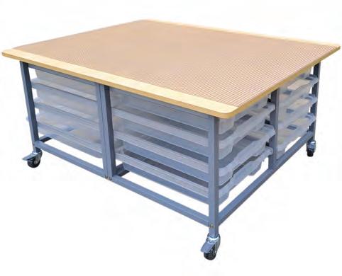Play table with storage that features LEGO compatible building plates. Kit includes Table, 4 x Large Containers and 8 x Small Containers. Size: 93 (W) x 77 (D) x 52 (H) cm.