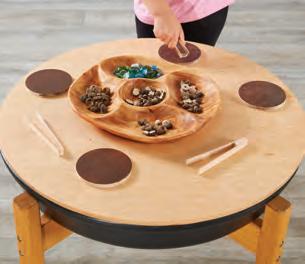Inviting round low table with sturdy aluminium frame and acacia top, paired with 6 outdoor cushions in a mix of natural and vibrant patterns for flexible, social outdoor learning in early years. Table Size: 100 (dia.) x 30 (H) cm