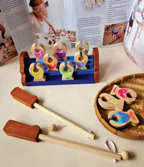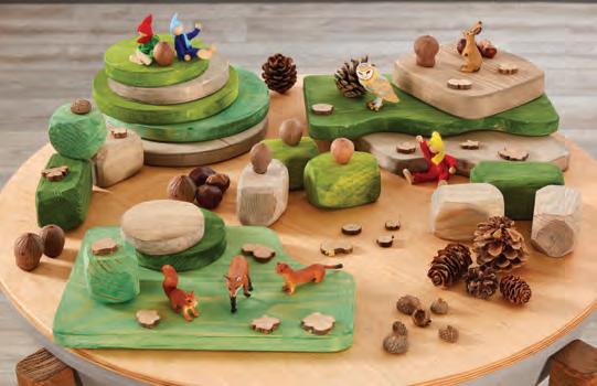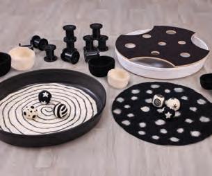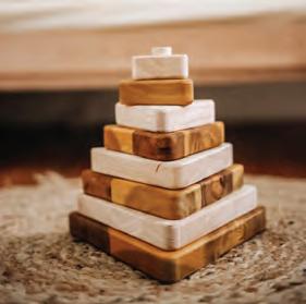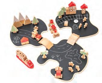 16-piece wooden set for ages 3+. Encourages creativity, pattern play, and spatial thinking with natural and black shapes.