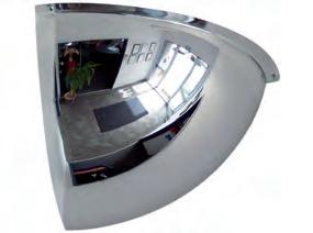 Designed to fit neatly into corners, the quarter dome mirror provides clear visibility down two intersecting hallways to eliminate blind spots.