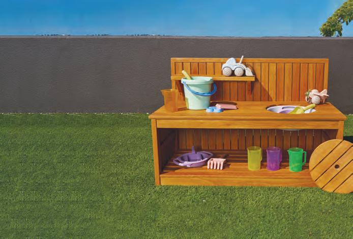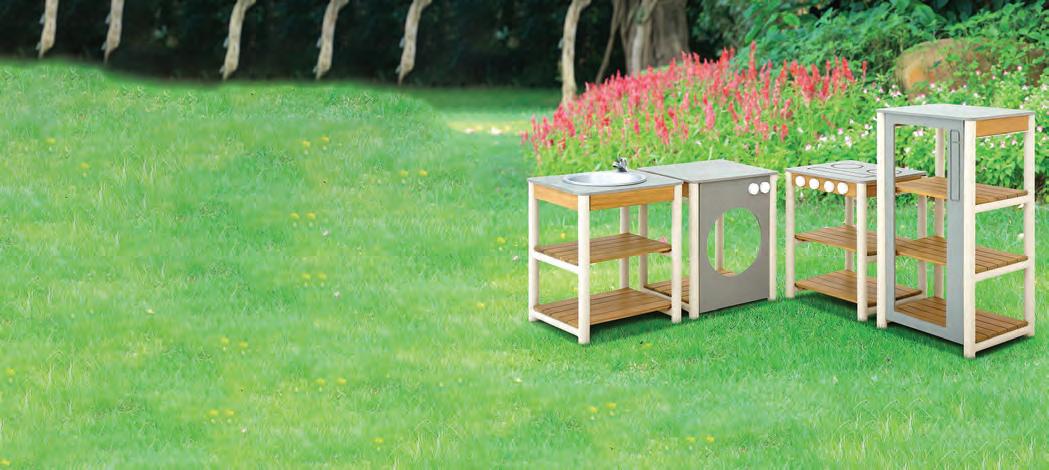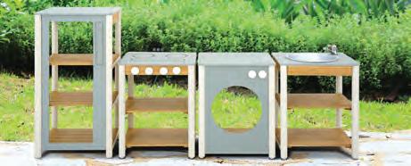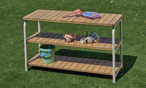 This outdoor shelf combines a durable aluminium frame with acacia timber shelving, offering a practical and weather-resistant storage solution for early learning environments.