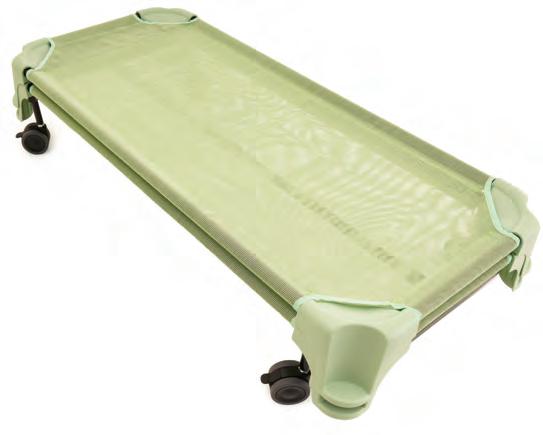 The MTA Spaces Stacking Bed in Sage Green is a durable and practical sleep solution for early learning. Measuring 133cm x 59cm, it features a robust plastic frame, lightweight metal structure, and supportive mesh surface. The innovative leg design makes stacking quick, safe, and effortless, helping optimise storage. Minimal assembly required. Storage trolley and bedsheets are available separately. Suitable for children aged 3 years and up.