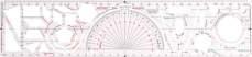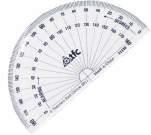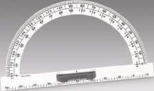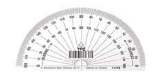 Half Circle 180° student plastic protractor. Clear plastic with black and also red measurements. Measuring 100mm in diameter. In addition economical enough to supply each student with their own protractor.