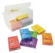 Set of 12 laminated playing card decks in assorted colours, with blank backs for marking and easy classroom organisation.