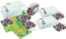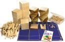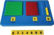 Base 10 Class Set – 746 Pieces – Demonstrates units, tens, hundreds, and thousands. Includes 6 cubes, 4 flats (10p), 2 longs (100p), 1 units (500p), combo mat, and tote bag (33 × 23 × 27cm).