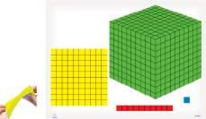 Base Ten Set with Combo Mat – Includes 10 cubes, 5 flats (10p), 1 set longs (100p), 1 set units (1000p), bonus litre cube, combo mat, and storage container.
