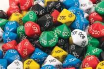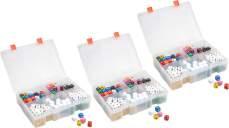 Comprehensive Mega Dice Kit with operations, place value, dot, and polyhedral dice. Includes 3 cases with sturdy compartment storage.