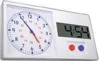 This Show and Tell Time board features two digital/analogue clocks, one set with numbers and one set without numbers.