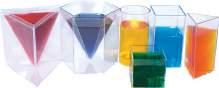 Comprehensive volume and capacity kit with cylinders, litre sets, cubes, cups, jugs, beakers, funnels, solids, and storage container.