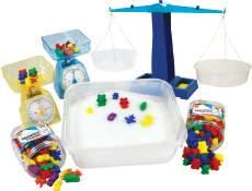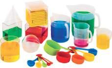 Comprehensive measurement kit with litres, cups, spoons, cylinders, jugs, and droppers, supporting hands-on maths curriculum activities. Supplied in storage container. Contents may vary.