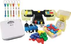 Essential primary kit for teaching mass, including weights, balances, spring scales, bathroom and kitchen scales for hands-on measurement learning.