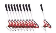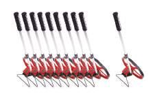 Set of 10 plastic trundle wheels with loud clicker (off, 10cm, 1m), reversible use, and detachable handles for easy storage.