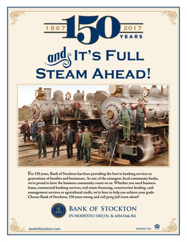 For 150 years, Bank of Stockton has been providing the best in banking services to generations of families and businesses. As one of the strongest, local community banks, we’re proud to have the business community count on us. Whether you need business loans, commercial banking services, real estate financing, construction lending, cash management services or agricultural credit, we’re here to help you achieve your goals. Choose Bank of Stockton, 150 years strong and still going full steam ahead!