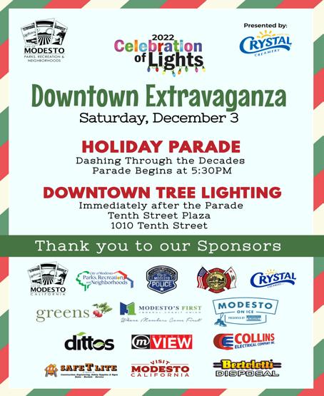 nother year has blown by. It seems so crazy how fast it has gone. Our grandson is 2 1/2, our company is 34 years old, Becky and I have been married for 37 years and for the last 8 years, we have decorated down town Modesto for a Rockin’ Holiday. It seems like the memories stay pretty clear. I remember as a kid, going to JC Penny, Kress, and Sears in downtown Modesto, seeing the decorations over the street and feeling so festive and that is was inspired us to try to bring that back in downtown Modesto. I hope that we can inspire new shop windows to browse, maybe a new florist or magical place and make people want to walk around, stop and shop, get a drink or dinner, see a show and make a night out of it. Rockin’ Holiday should help bring those memories back with snow, Santa, festive Rockin’ tree, local music and so much more. Please stop by and enjoy. It is all free for you to enjoy, thanks to our friends and partners. Work ing together is how we make Modesto better where we take an idea, and build on it as a team. Teamwork, respect, trust and friend ship are the keys to making things happen. At our house, the Christmas holiday season did not begin until after Thanksgiving. Dinner, Tree, Decorations, and then, we watch Christmas Vacation complete with Wally World cup of eggnog. It is really important to enjoy the time you are in and it is always kind of weird for me as we are