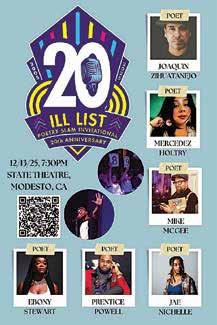 Get ready for a hall of fame night of verbal competition as the Ill List celebrates 20 years. ModestoView and Sierra Pacific Warehouse Group have been presenting sponsors for years. The Ill List fosters creativity, free speech, new thinking as winners from previous years return to Modesto to take on each other. The audience is key as selected judges rank each poet. The winner will leave with $1000 and the honor of being the Ill List Anniversary Champion. Oh yeah, we love the commercials. Don’t miss out.
