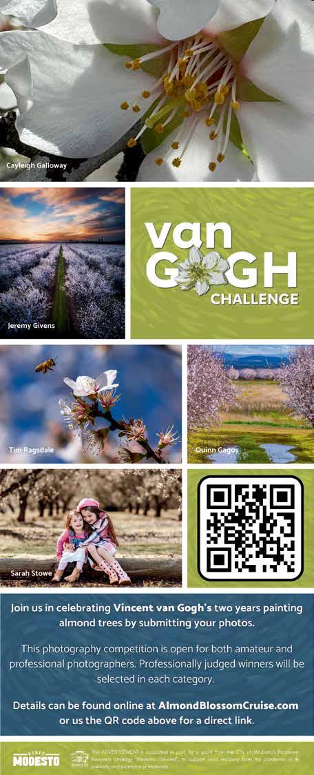 Almond blossoms are coming. It’s time to cast your eyes to the orchards of the Modesto region while visitors from around the world come to experience this beautiful season. It looks like white snowflakes over acres and acres. We take our place along with Japan and Washington DC’s cherry blossoms as a global beauty destination, thanks to the great and innovative work of Visit Modesto. www.visitmodesto. com
