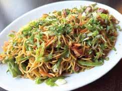 dough shell and served up with a spicy soy sauce will make you want to treat each taste specially. Next, the chow mein. This is hall of fame. Spicy pork or shrimp will really engage all of your senses and has quickly become one of our family’s take out faves. Another fun twist is Chinn’s take of spicy pork pozole with Ramen. This is both super tasty, rich and fun with a great broth. Patrick celebrates his mom, Besse with her receipt a special Besse Chinn Pizza on Saturdays served up with a spicy sriracha sauce.
