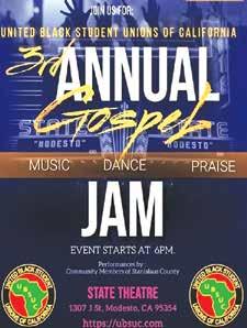 Gospel Jam is a dynamic celebration that brings together students, families, and community members for an evening of uplifting music, powerful performances, and cultural unity. This event highlights the rich legacy of gospel music as a cornerstone of Black culture and an expression of hope, resilience, and faith. February 21. State Theatre 1307 J St. Modesto www.thestate.org