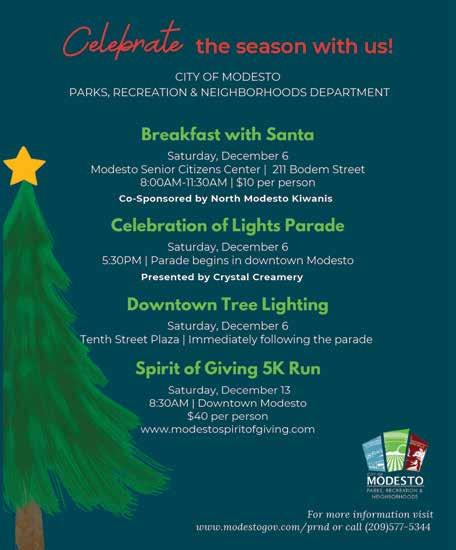 year’s theme is “Elves Just Want to Have Fun”! Whether you are a Buddy elf, part of an elf posse, or just an elf on the shelf, this celebration starts December 6th at 5:30 PM as it snakes through downtown down I St, 10th St and back up J Street. Make sure you get your spot along the route and your fave restaurant patios will fill up fast so don’t miss out. The Rockin’ Tree lighting happens immediately following the parade in 10th St Plaza. Do you want to be IN the parade and want to promote your company or organization? Get your float application in right away and get Elf costume going. www.modestogov. com/553/Holiday-Parade