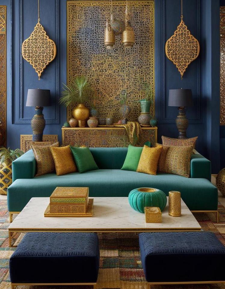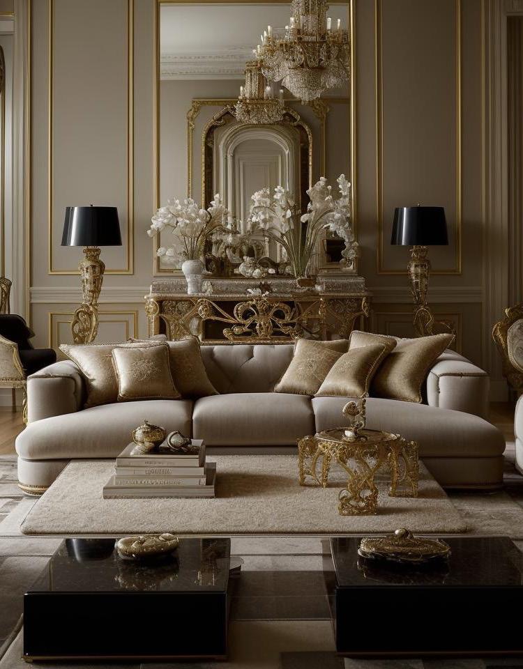 Luxury and sophistication converge in a display of rich textiles and sumptuous furniture, a grand invitation to a life of plush indulgence