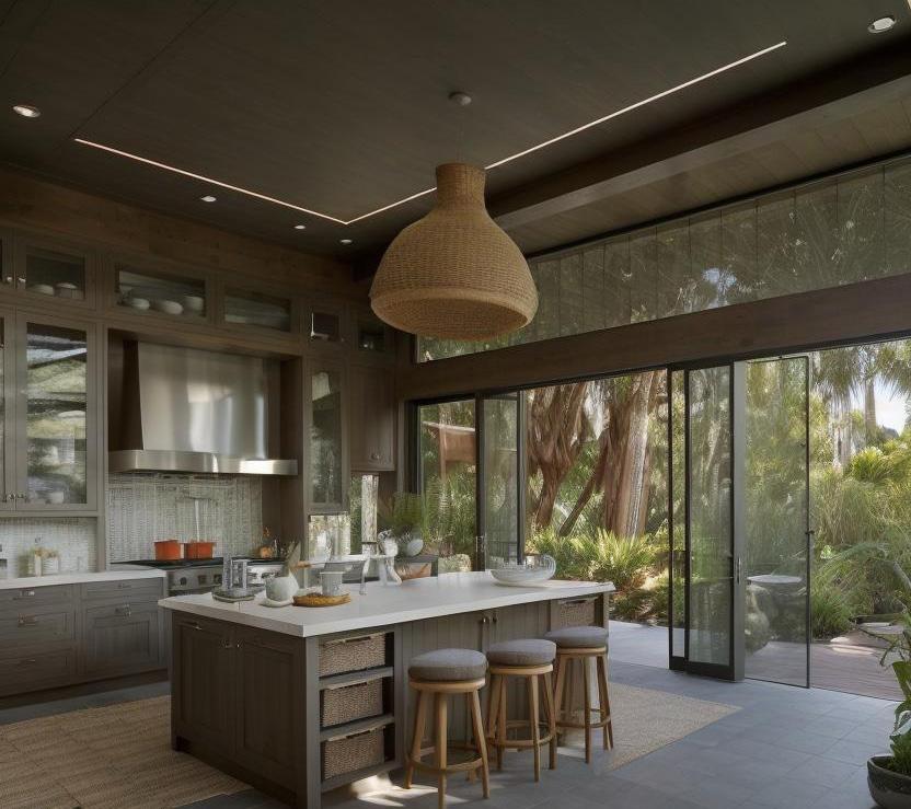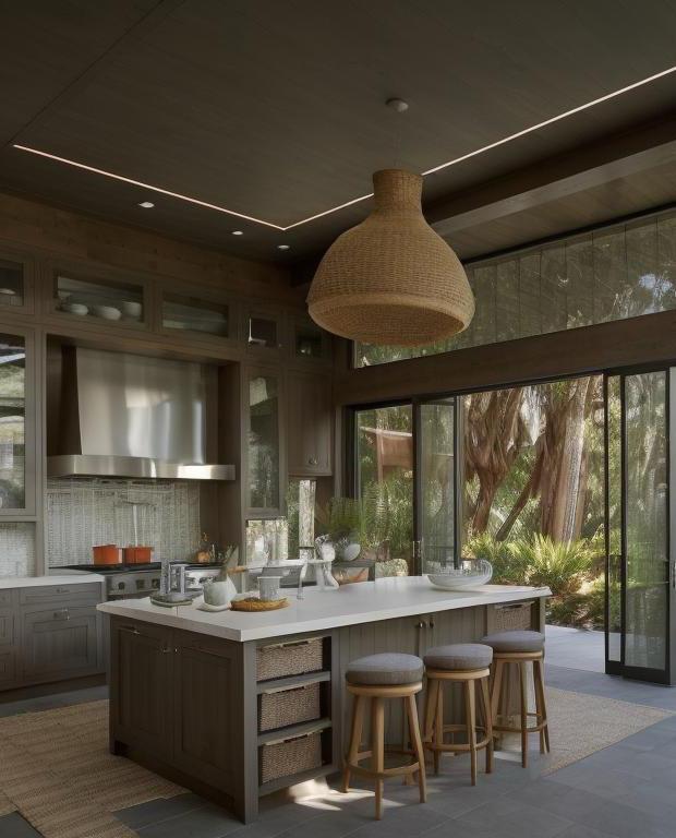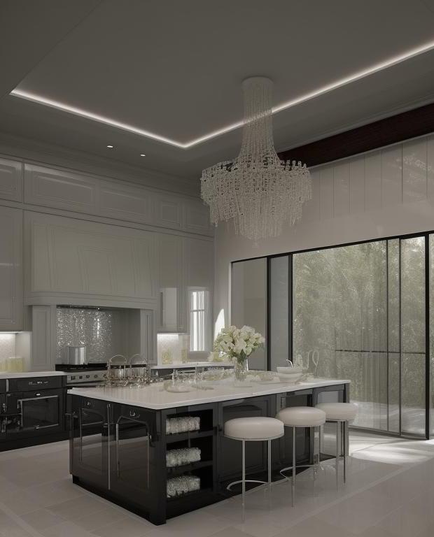 Stepping inside, one is immediately struck by the seamless integration of advanced technology and timeless aesthetics. The kitchen, often considered the heart of the home, is a testament to this fusion. It is not merely a space for culinary endeavors but a statement of style and functionality. Stateof-the-art appliances are harmoniously integrated into custom cabinetry, while elegant lighting fixtures illuminate the exquisite detAIls of the design, making it a culinary haven that exudes warmth and invites social gatherings.