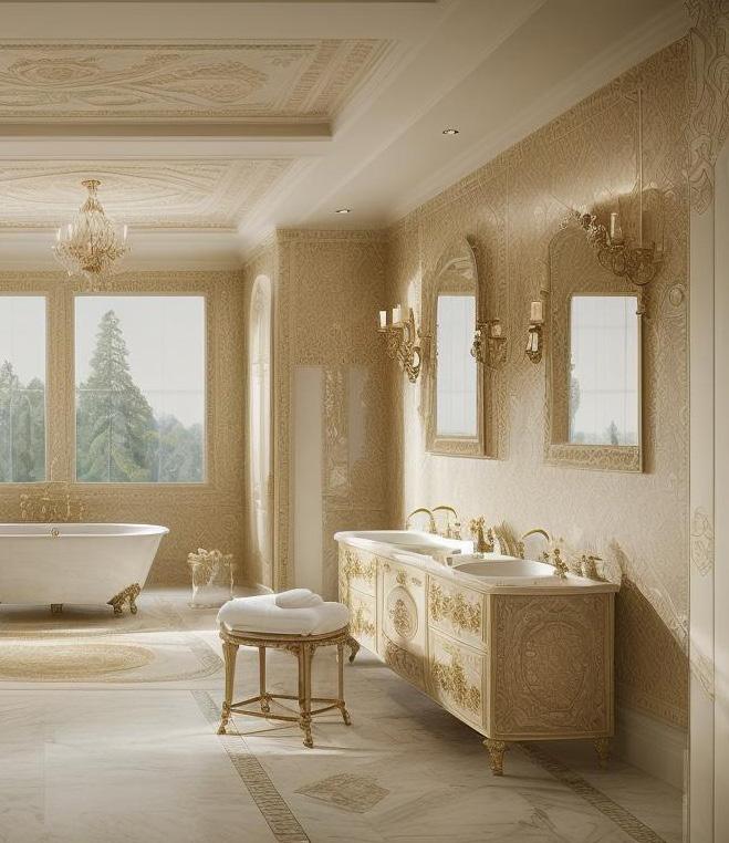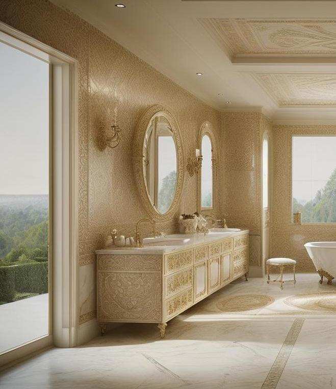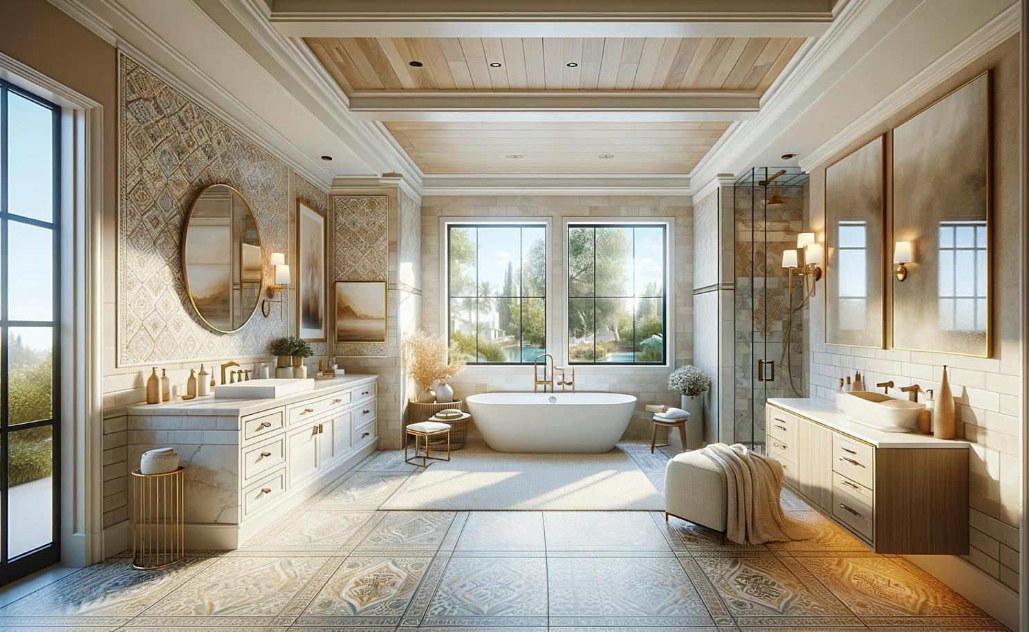 Moving through the home, the bathrooms reveal a spa-like luxury. Here, elegant fixtures, a spacious soaking tub, and intricate tile work come together to create spaces that are both functional and breathtakingly beautiful. Each bathroom is designed to offer a personal retreat, a place to unwind and rejuvenate.